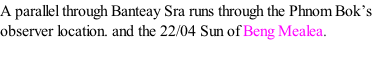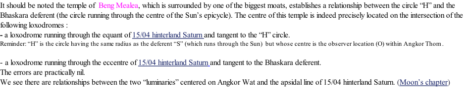 We’ll see in the chapter on the 15/04 outer planets of the hinterland that the complex of Preah Khan of Kompong Svay was conceived as a hub. The intersection of the parallel of the centre of the Chau Srei Vibol Sun’s epicycle with the loxodrome from Phnom Chissor to Preah Vihear is one component of the hub. Another creates a relationship with the site of Koh Ker (an earlier hub) which was located on the parallel where the zenith culmination occurred (and still occurs) on 27/04 (Gregorian), a date which corresponds to 22/04 Julian during the year 967 ie the reference date of the earlier planetary diagrams.