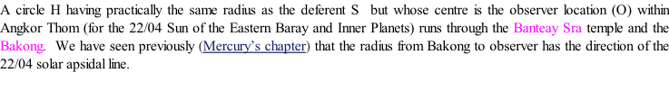 We’ll see in the chapter on the 15/04 outer planets of the hinterland that the complex of Preah Khan of Kompong Svay was conceived as a hub. The intersection of the parallel of the centre of the Chau Srei Vibol Sun’s epicycle with the loxodrome from Phnom Chissor to Preah Vihear is one component of the hub. Another creates a relationship with the site of Koh Ker (an earlier hub) which was located on the parallel where the zenith culmination occurred (and still occurs) on 27/04 (Gregorian), a date which corresponds to 22/04 Julian during the year 967 ie the reference date of the earlier planetary diagrams.