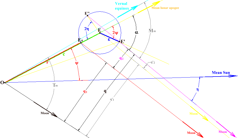 The diagrams were established from the geocentric longitude of the Moon on 15 / 04 / 967 at 23:56 Angkor time (the choice of this date is explained in the chapter “Later diagrams”)