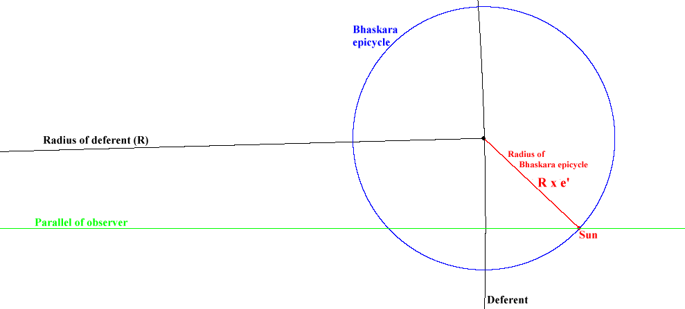 The location of an outer planet is on the circumference of the Sighra epicycle at the point where it is met by a radius drawn parallel to the direction of the Sun from the observer, (i.e. due east from the centre of the Sighra epicycle)
